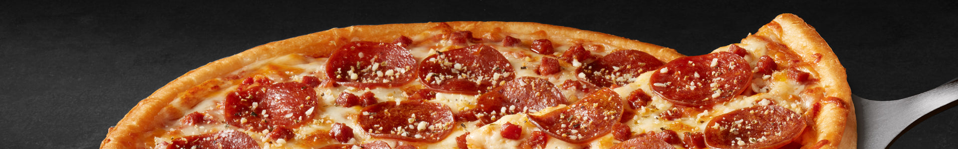 Fully loaded with a half-pound of delicious, premium toppings - mozzarella and cheddar cheeses and three cuts of pepperoni: sliced, diced & quartered.